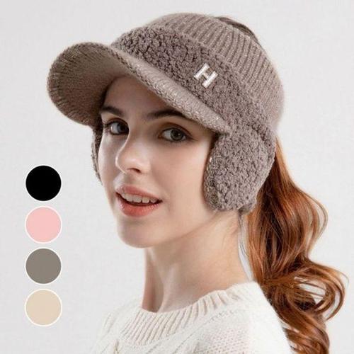 [에이치플러스몰]ON269 방한 니트 스타일 썬캡 귀도리 귀돌이 모자 선
