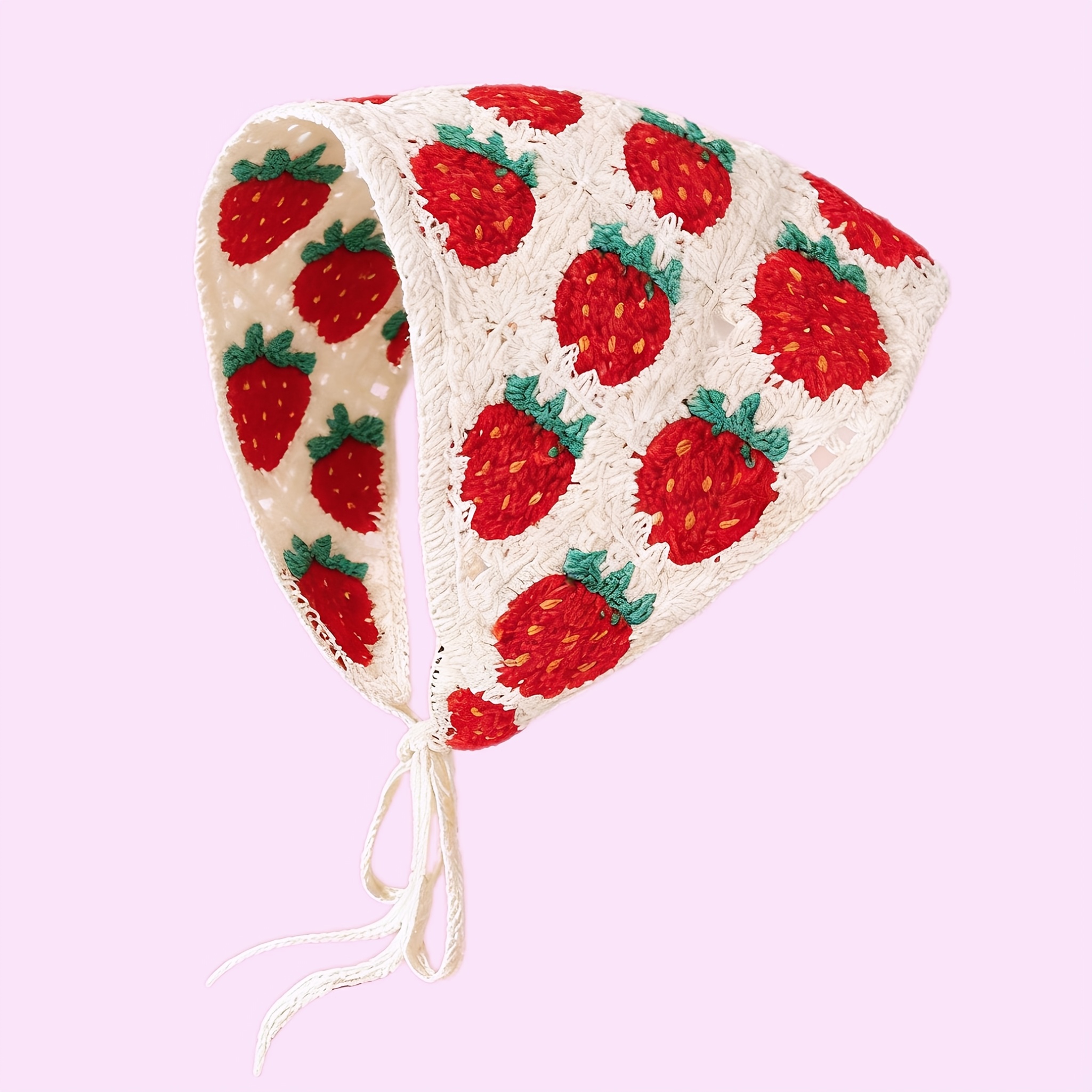 TEMU 사랑스럽고 부드러운 파스텔 크로셰 헤어피스. 꽃무늬 딸기 패턴 니트 스카프가 특징이며, 해변 나들이, 휴가 및 데일리 패션에 완벽합니다.