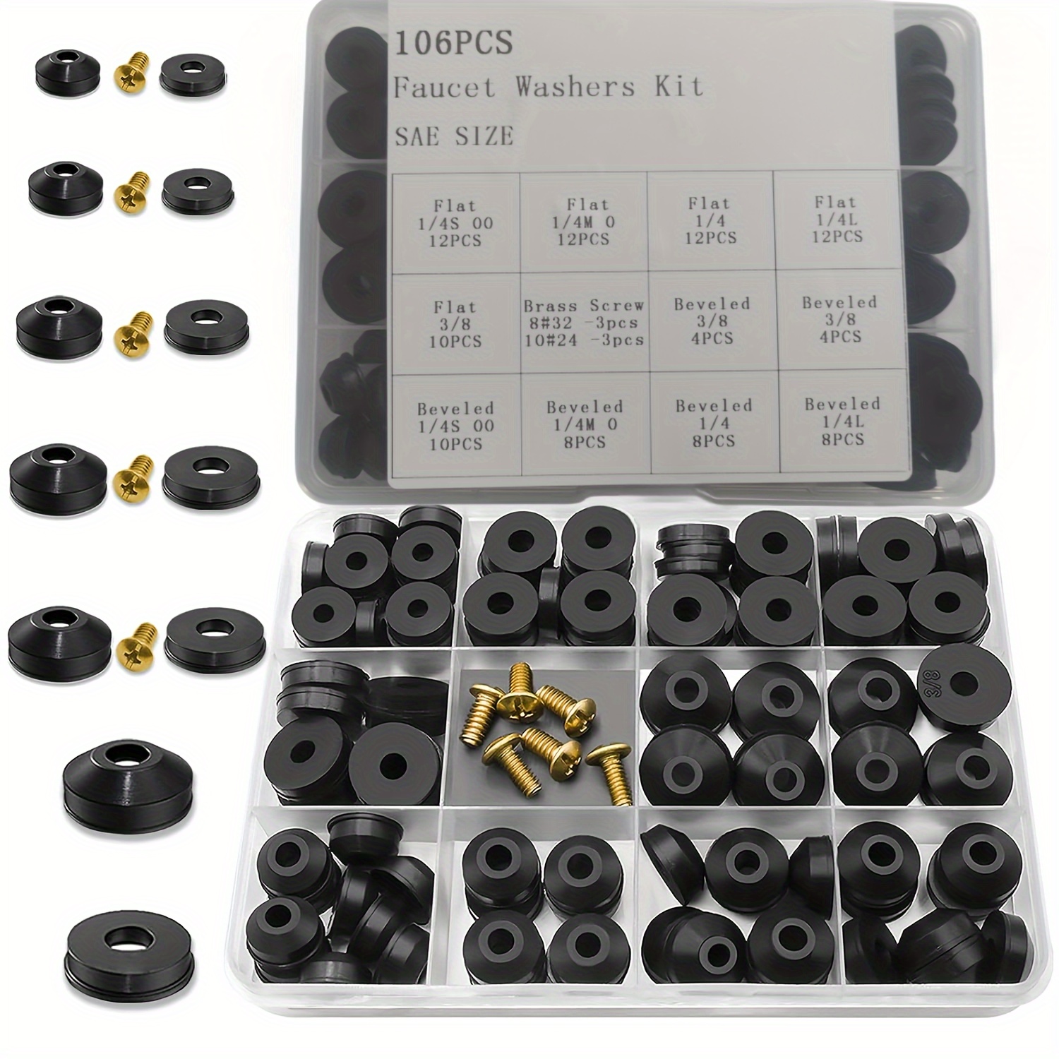 TEMU 106개 와셔 키트 - 튼튼한 고무 O-링 & 다양한 와셔와 황동 나사로 쉬운 스템 교체, 70A 경도