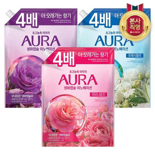 AURA 아우라 생화캡슐 초고농축 섬유유연제 용기 1.7L x 2개 (피오니로즈/프레시릴리/자스민머스크 택1)