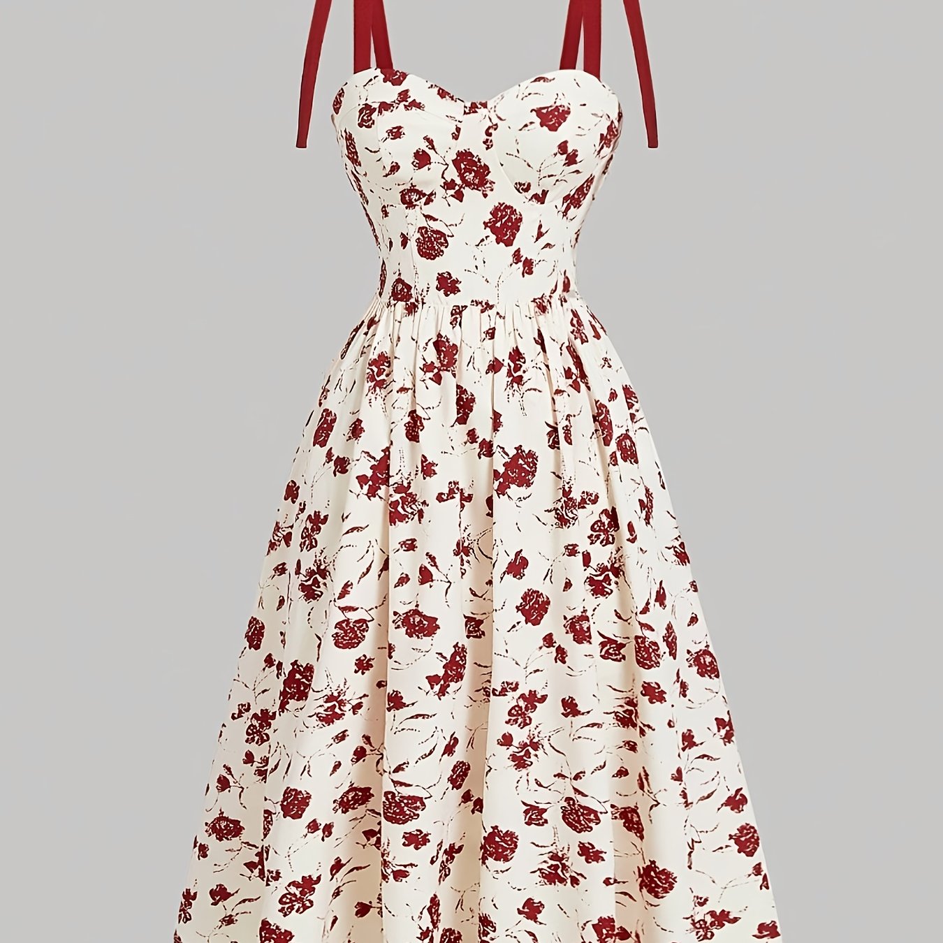 TEMU 봄 휴가 시즌을 위한 보우 타이가 달린 숄더 스트랩이 있는 긴 여름 플로럴 프린트 원피스