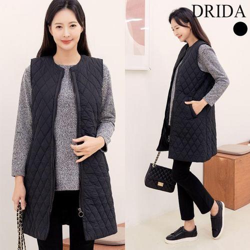 [드리다]엄마옷 여성 겨울 퀼팅 다이아 누빔 빅사이즈 롱 패딩 조끼 베스트 40-50대 미시 중년여성의류 ..