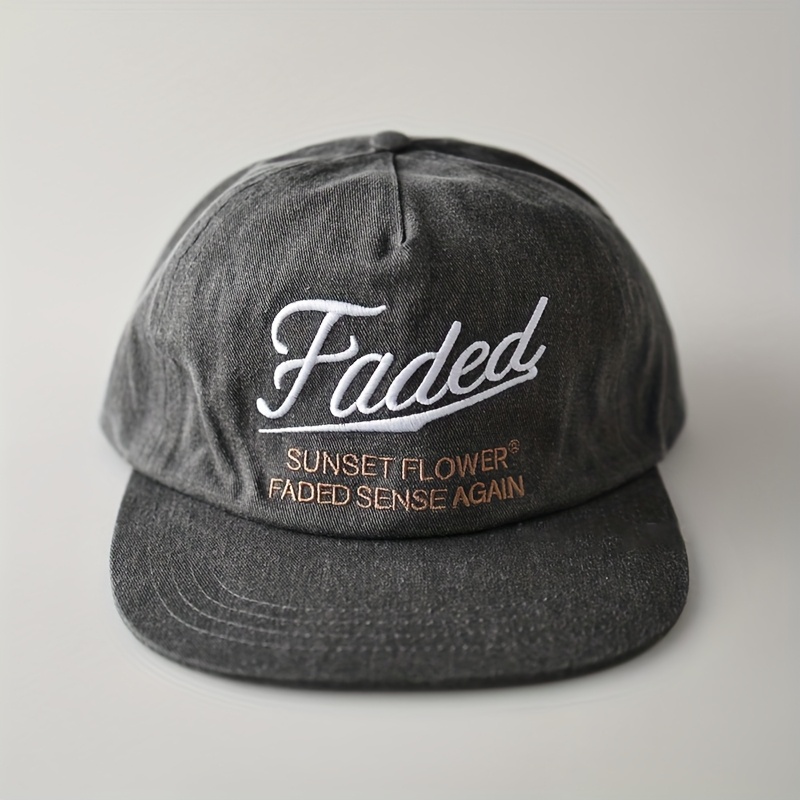 TEMU 미국 빈티지 소프트탑 레터 자수 플랫 브림 캡, 스타일리시하고 멋진 스트리트 힙합 스타일, 얼굴에 완벽하고 매력적인 감각, 남녀 모두에게 적합
