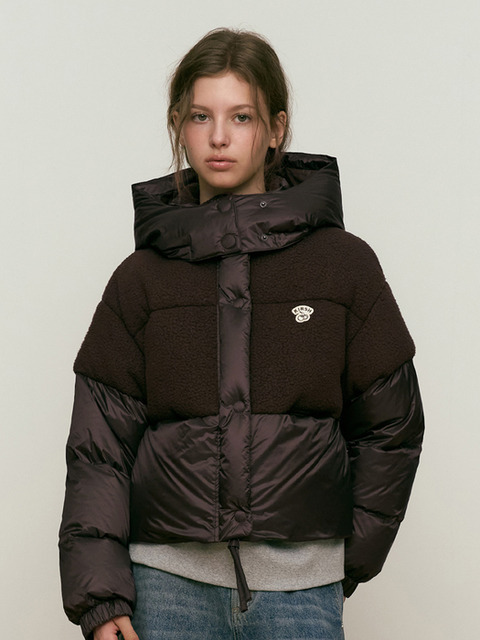 [키르시] 아치 체리 플리스 믹스 크롭 다운 점퍼 [다크 브라운]