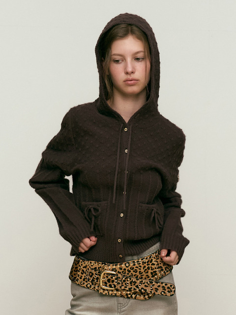 [키르시] 체리 리본 후드 가디건 [다크 브라운]