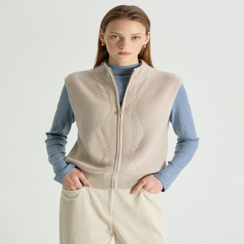 닥스 여성 [닥스레이디스 위크]베이지 캐시미어100% 케이블 집업 니트베스트 (DLSW5DE07I2)