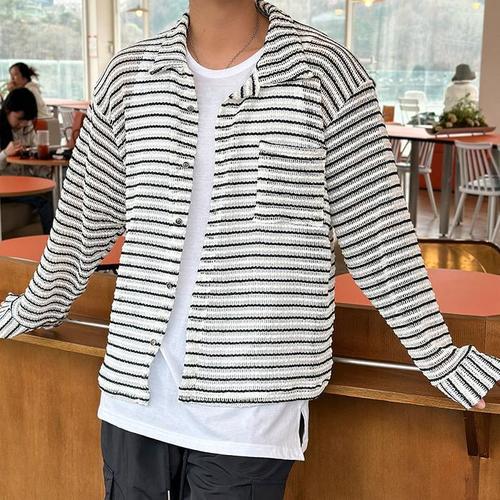 [다잇템]남자 박시핏 단가라 콘트라스트 카라 가디건 (14524944A)