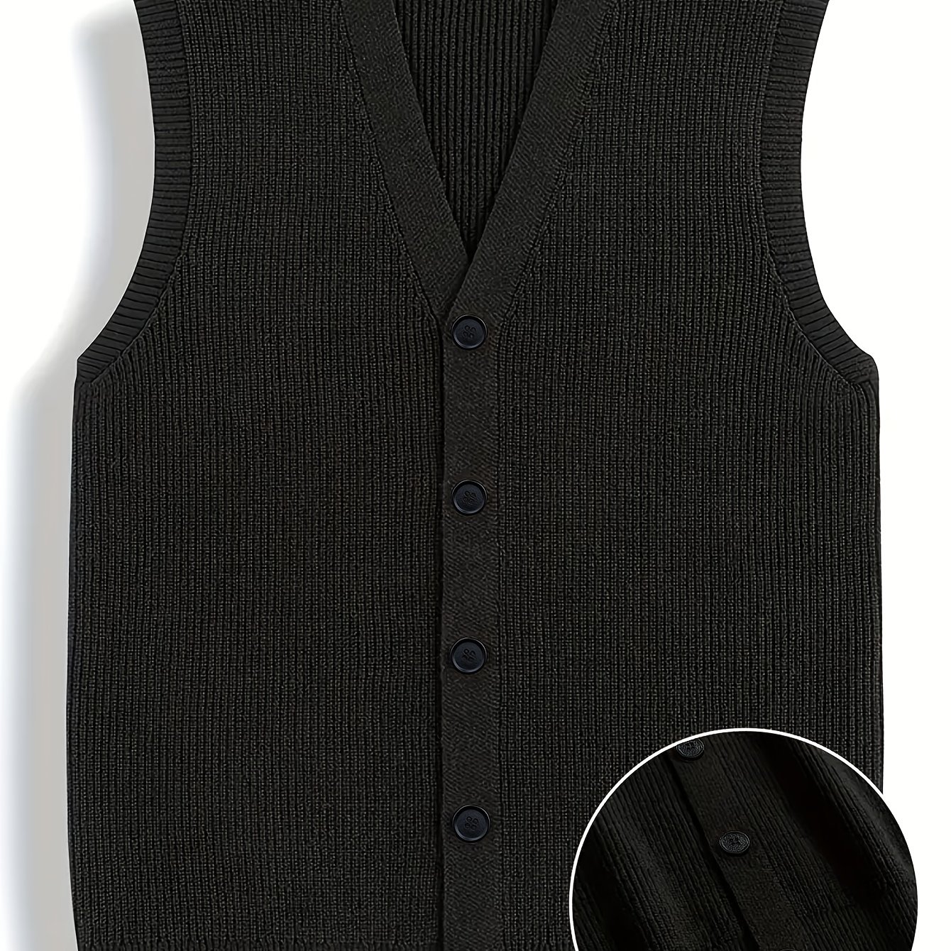 TEMU 남성용 솔리드 컬러 니트 조끼, 로프 캐주얼 풀오버 스웨터