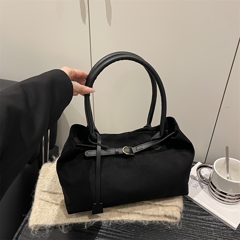 TEMU 여성용 라지 빈티지 무광 토트백 - 출퇴근 및 여행용 한국 스타일, 조절식 스트랩 및 버클 잠금 핸드백, / 소재, 직장, 학교, 선물용 넉넉한 겨드랑이 숄더백 (손세탁 가능)