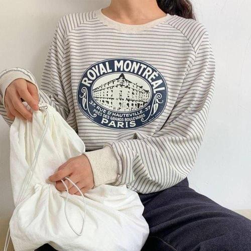 스탠다드핏 여성 라운드넥 스트라이프 긴팔 티셔츠