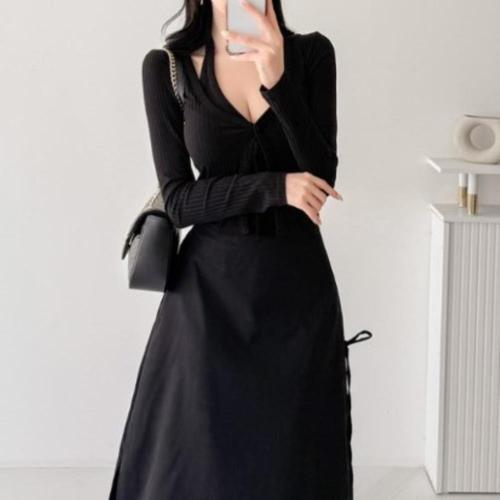 여자 U넥 캐쥬얼 단가라 보온 긴팔티