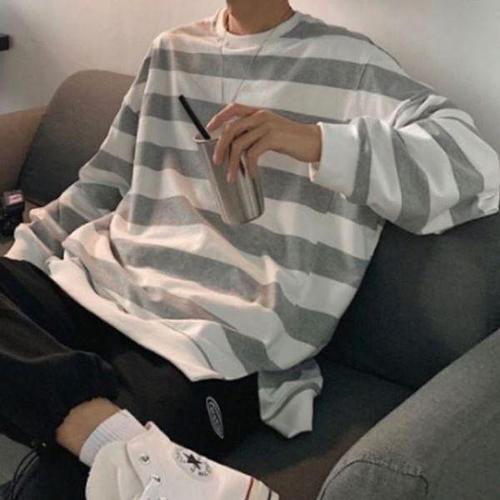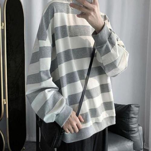[에이치플러스몰]스트라이프 라운드넥 티셔츠 맨투맨 긴팔티 운동