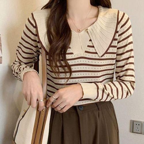 아피나르 여성용 레트로 스트라이프 긴팔 티셔츠