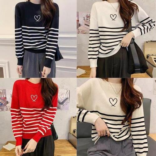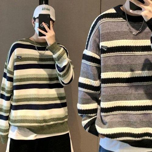 [셀러허브_여성트랜드패션]니트 긴팔 남성 니트티 겨울 라운느넥 남자 라운드 줄무늬 남성줄 긴팔티 패션..