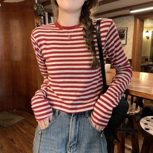[셀러허브_여성트랜드패션]여자 스트라이프 긴팔티 단가라 캐주얼 데일리