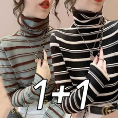 1+1 스트라이프 긴팔티 여성 기모도톰 이너티 티셔츠 가을겨울 목폴라 탑 풀오버 상의