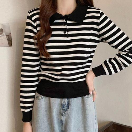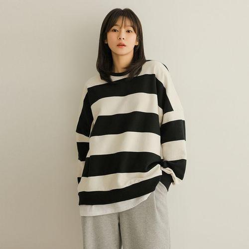 소비르 여성 긴팔 스트라이프 니트티 루즈핏 니트 티셔츠