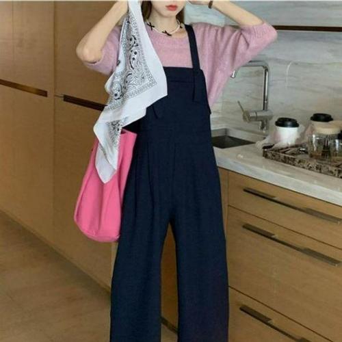 [다잇템_패션]여성 단추 단가라 점프수트 넓은 끈 팬츠