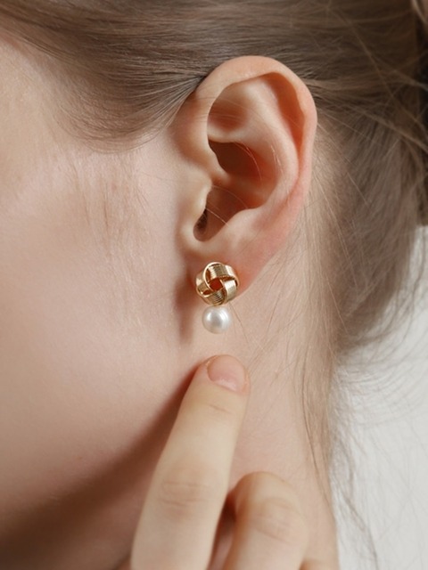 [하프클럽/]귀걸이 담수진주 써지컬 자연주의 두알 매듭 심플