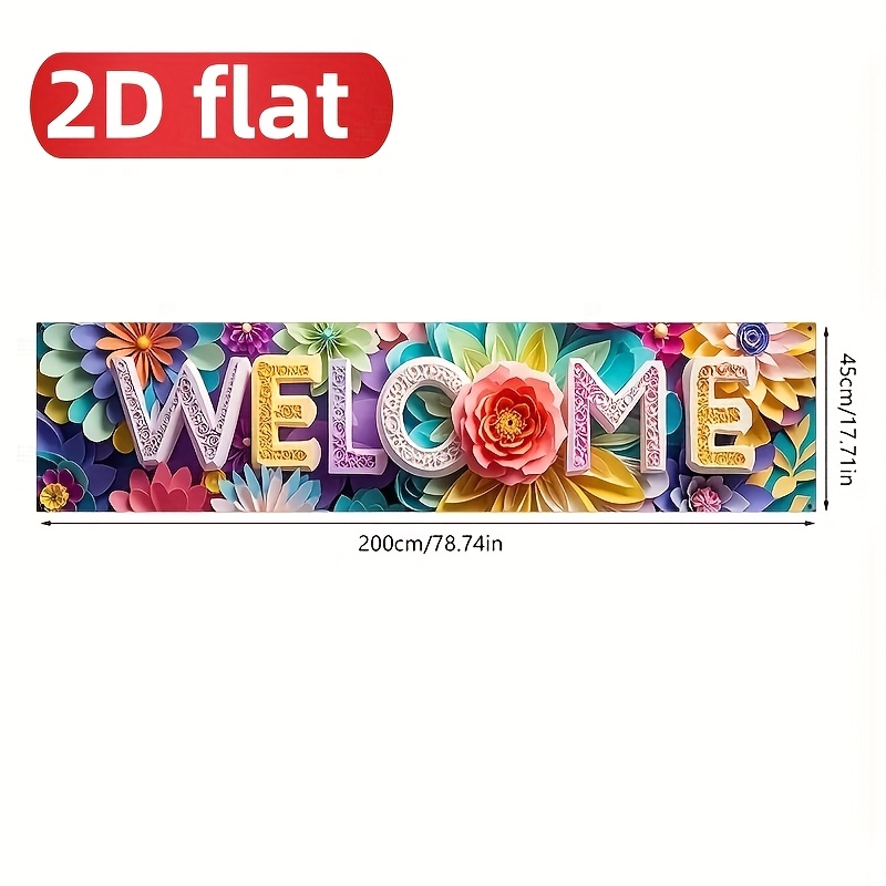 TEMU 폴리에스터로 만든 2D 파티 배너 17*78인치/45*200cm, 오리가미 꽃을 사용한 입체적인 환영 효과를 연출하는 2D 파티 환영 표지판, 집과 정원 장식에 적합하며 잔디 울타리 파티 용품에도 매우 적합합니다. 모든 계절에 적합한 파티 초대장 환영 표지판 장식