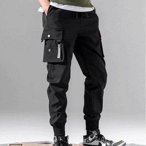 SMOPIG 남성 아웃도어 트레이닝 바지 밑단 스트링 조절 와이드 와이드 팬츠 방수 원단 남자조거팬츠