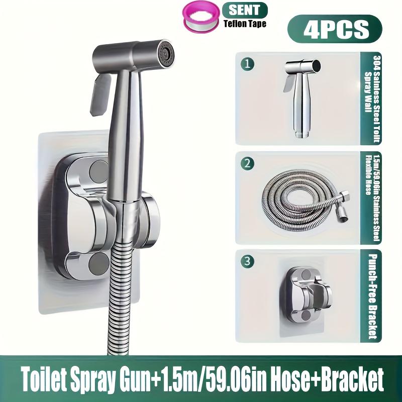 TEMU 중량 304 스테인레스 스틸 욕실 청소 고압 총 | 내구성 1.5m 고품질 호스 + 벽걸이 브래킷 | 샤워/화장실/주방 다목적 노즐 | 인간공학 비끄러지지 않는 손잡이 - 설치가 쉬운 욕실 액세서리, 세련된 금속 마감|변기부속품
