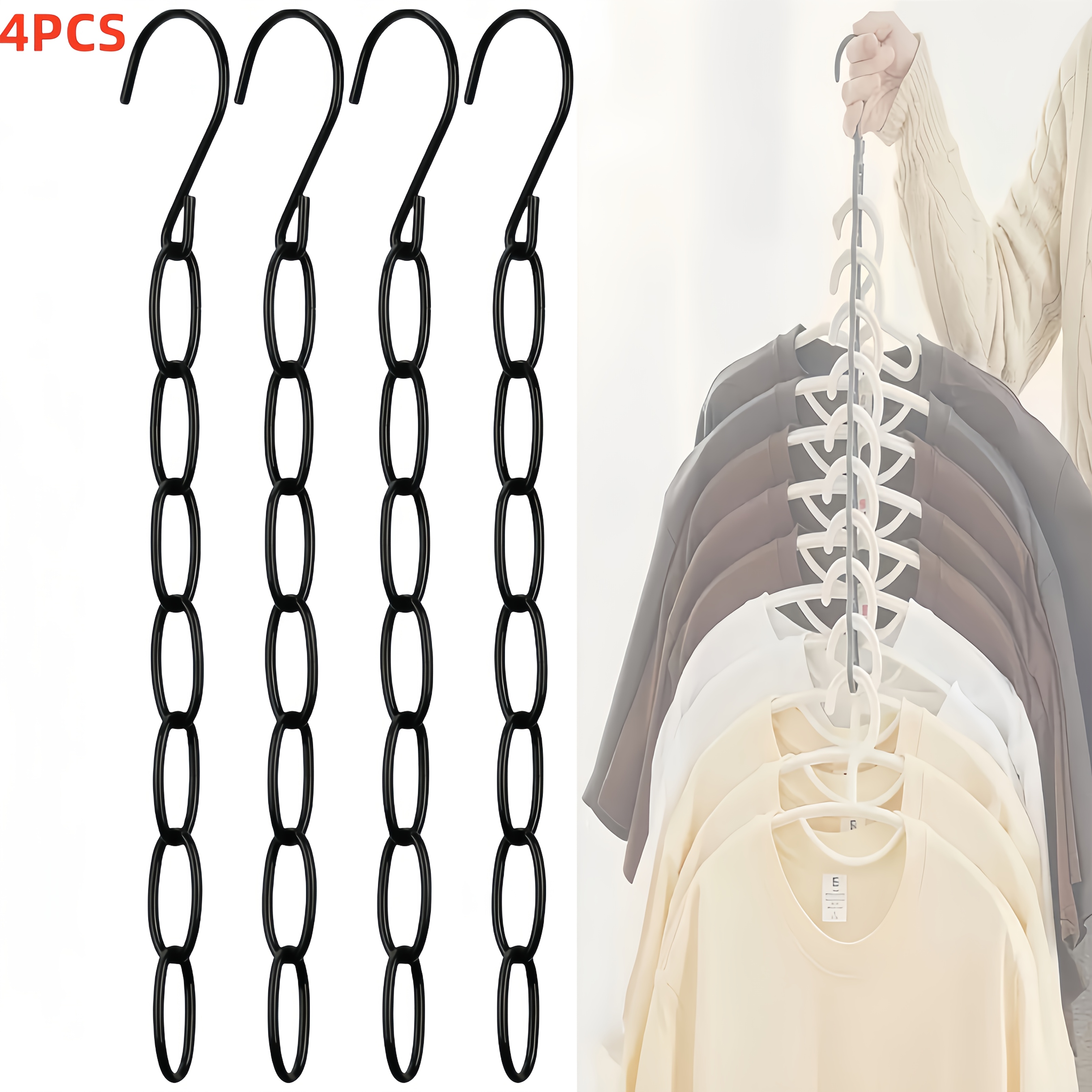 TEMU 4피스 의류 체인 행거 세트, 7구멍 금속 옷걸이 - 대학 기숙사, 옷장 정리, 집, 사무실 및 여행용 필수 아이템