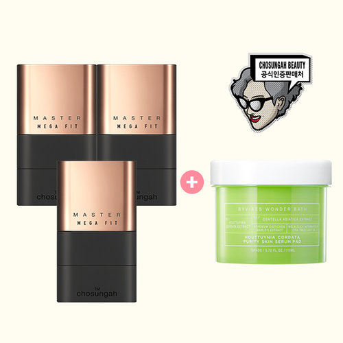 [스틱파운데이션 최다 찬스/오직 방송에서만] 조성아 메가핏 스틱 파운데이션 방송 패키지 (본품 3개 + 어성초패드)