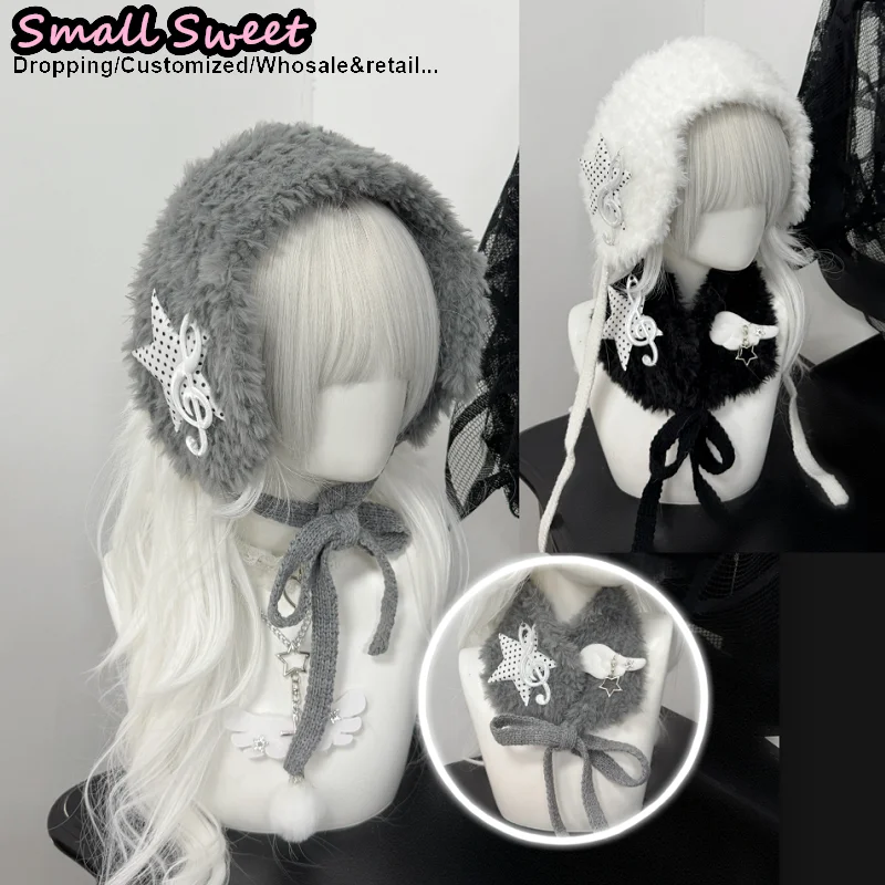 여성 서브컬쳐 Y2K 걸 뮤지컬 노트 플러시 귀마개 귀여운 겨울 따뜻함 귀 보호 & 스카프 투웨이 고딕 펑크 액세서리