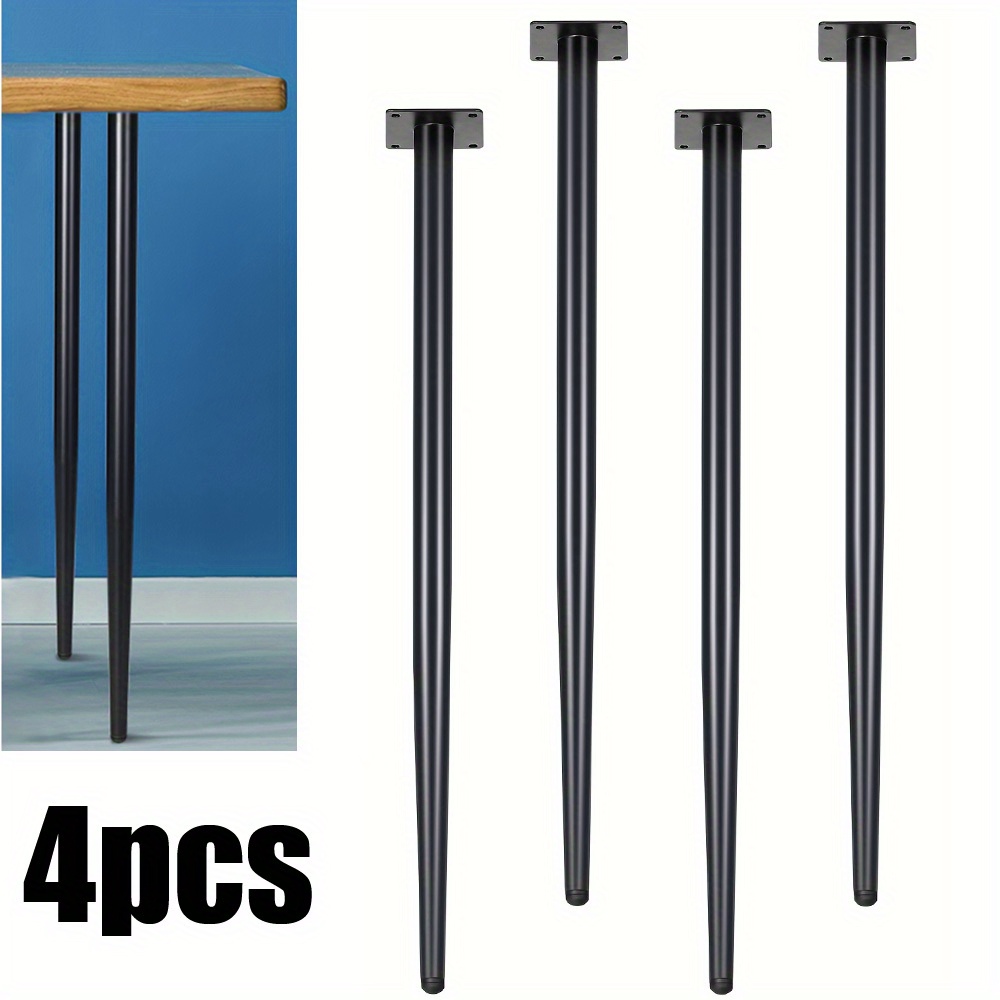 TEMU 가구용 원뿔형 금속 다리 4개 세트, 튼튼한 내구성 디자인, 의자 발 교체에 적합. 블랙 색상의 마운팅 나사 및 플라스틱 패드 포함. 소파, 커피 테이블 및 프로젝트에 적합.