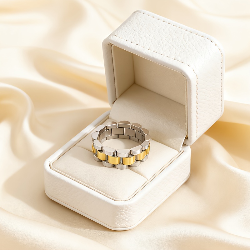 TEMU 우아하고 고급스러운 스테인리스 스틸 스트랩과 링, 발렌타인데이 선물로 추천하는 남녀공용 , 파티와 데일리 코디