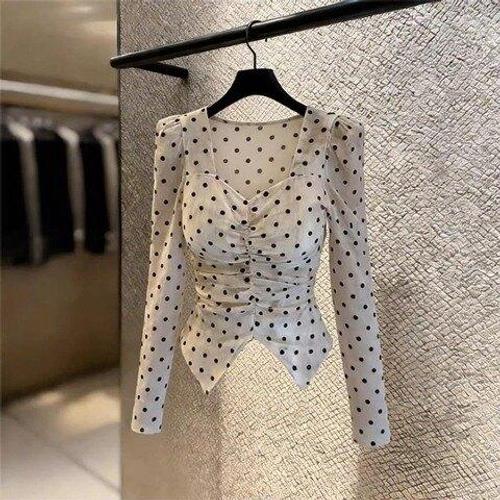 [아리엘스타일]도트 셔링 슬림핏 포인트탑 크넨슈슬림탑