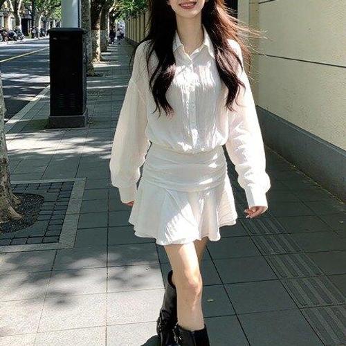 [아리엘스타일]셔링핀턱 여리핏 미니원피스 더블랑원피스