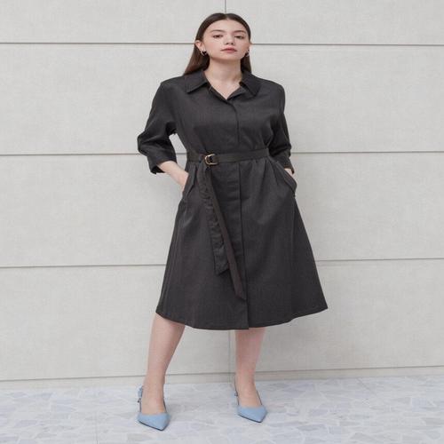 [더아이잗]봄.가을용 셔츠형 벨티드 원피스 IP9OP0411390