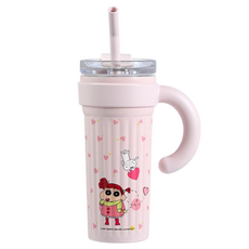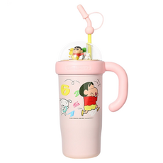 Aiying 짱구 겨울 시리즈 두꺼운 손잡이 빨대 보온텀블러, 핑크, 1개, 900ml