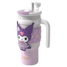 StarR 산리오 캐릭터 실리콘 커버 스트로우 보온 텀블러, 1개, 900ml, 화이트 퍼플