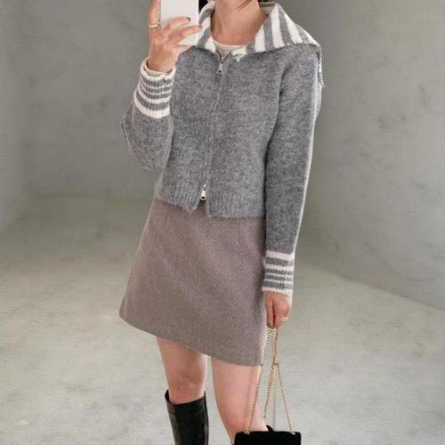 [다잇템_패션]여성 2WAY 덤블 단가라 스웨터 집업 카디건