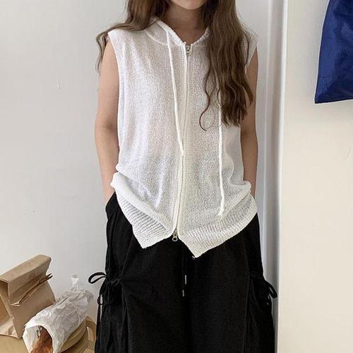 [다잇템]여성 드로우코드 덤블 후디 집업 베스트