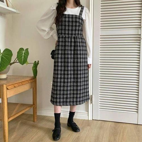 [에이치플러스몰]트위드 데님 루폴린 쉬폰 온나핏 롱니트 원피스
