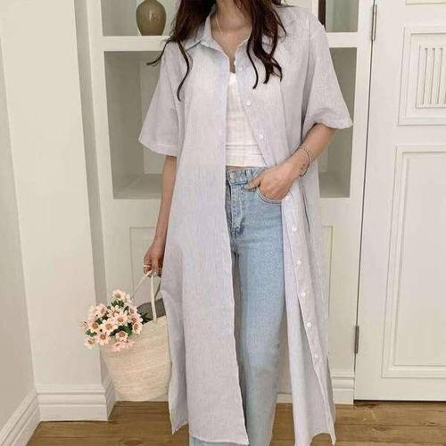 [에이치플러스몰]셔츠 데님 여름 롱 쉬폰 온나핏 하객 원피스
