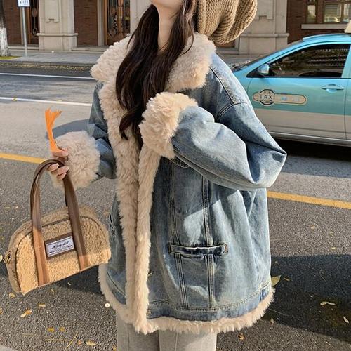 [끌레아]겨울 롱 코트 롱 청 여성 자켓 여자 데님 양털