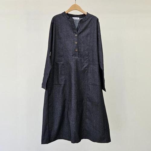 [유아몽드]데님 롱 민소매 원피스 빅사이즈 포켓 라운드넥 밴딩