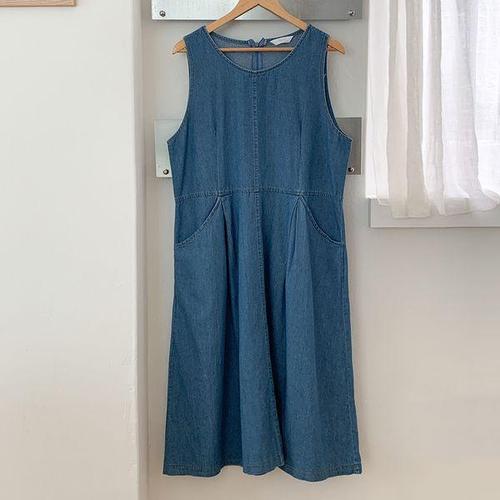여름 데님 A라인 민소매 나시 롱 원피스 바캉스 청원피스 빅사이즈
