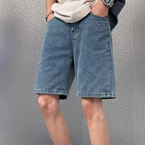 [셀러허브_여성트랜드패션]데님 남성 와이드 반바지 밴딩 5부 남자 청반바지