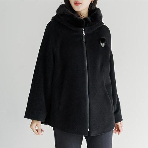 [데드라](100size)[THE BLACK] 아띠르울밍크후드코트(브로치SET) OUD6062_DO