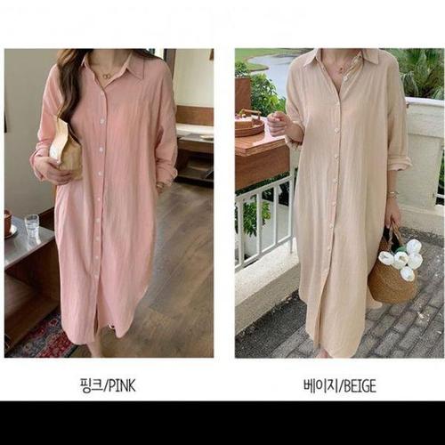 [에이치플러스몰]셔츠 베이직 여성 롱 원피스 올데이 봄 가을 여름 옆