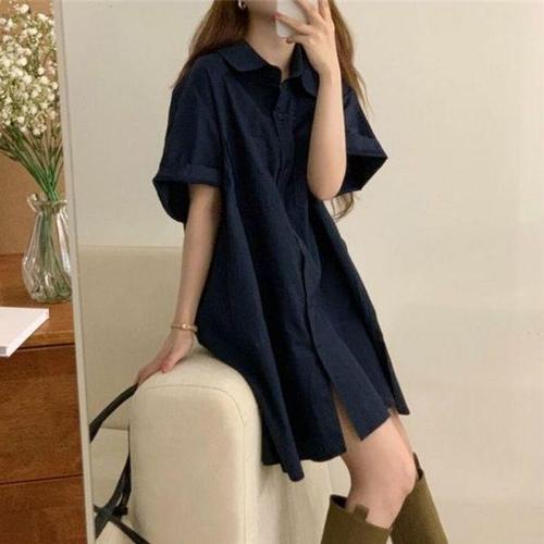 [에이치플러스몰]롱셔츠 베이직 원피스 시원한반팔 체형커버 올데이 차