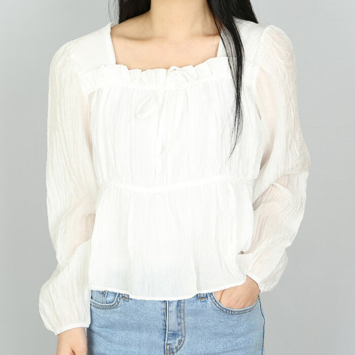 파라노말샵 / (데이트룩) 5색 쉬폰 셔링 스퀘어넥 긴팔 블라우스 (
