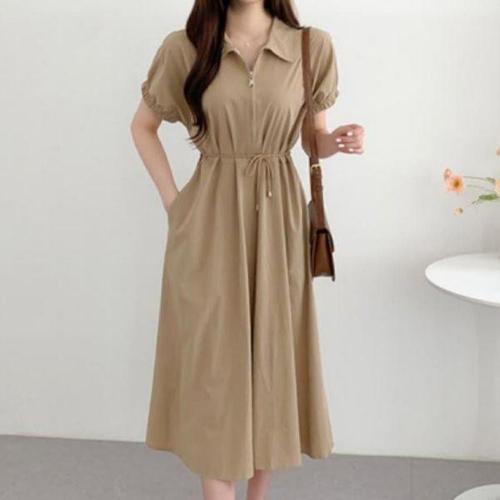 [에이치플러스몰]여성 간절기 데일리 레이스업 하객룩 퍼프 롱 원피스