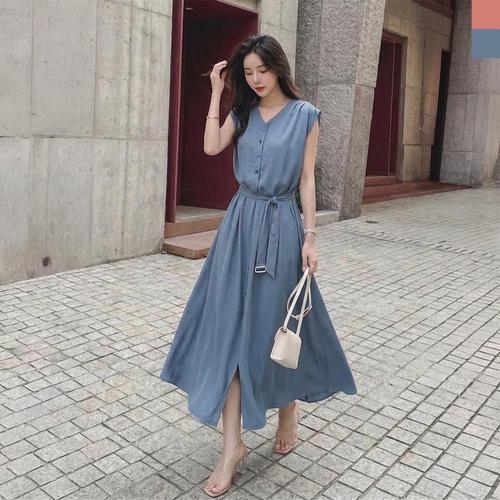 [오너클랜]인기상품 여자 데일리 편한 민소매 밑두줄 민소매 롱 원피스 [WB126D8_260423]